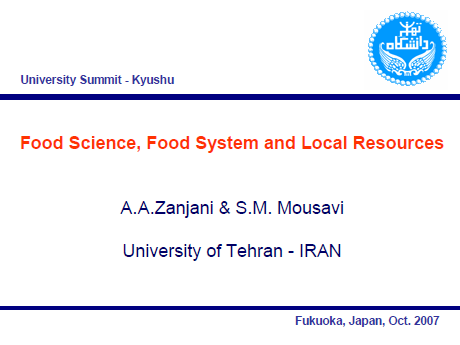「Food Science, Food System and Local Resources]