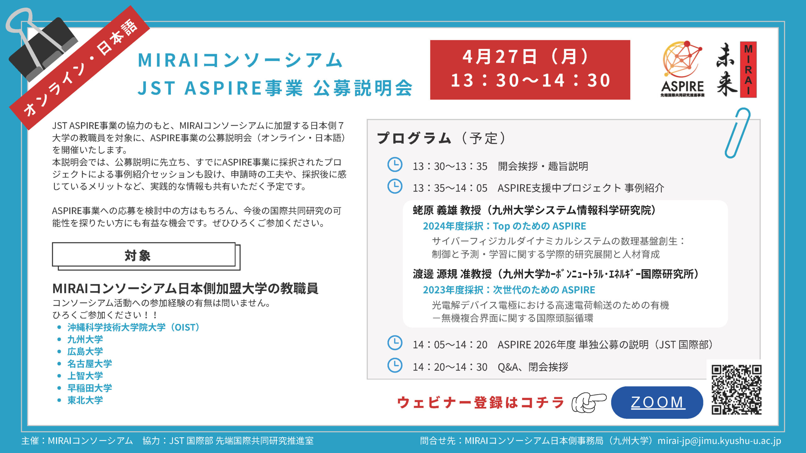 4/27 ウェビナー「JST ASPIRE事業 公募説明会」
