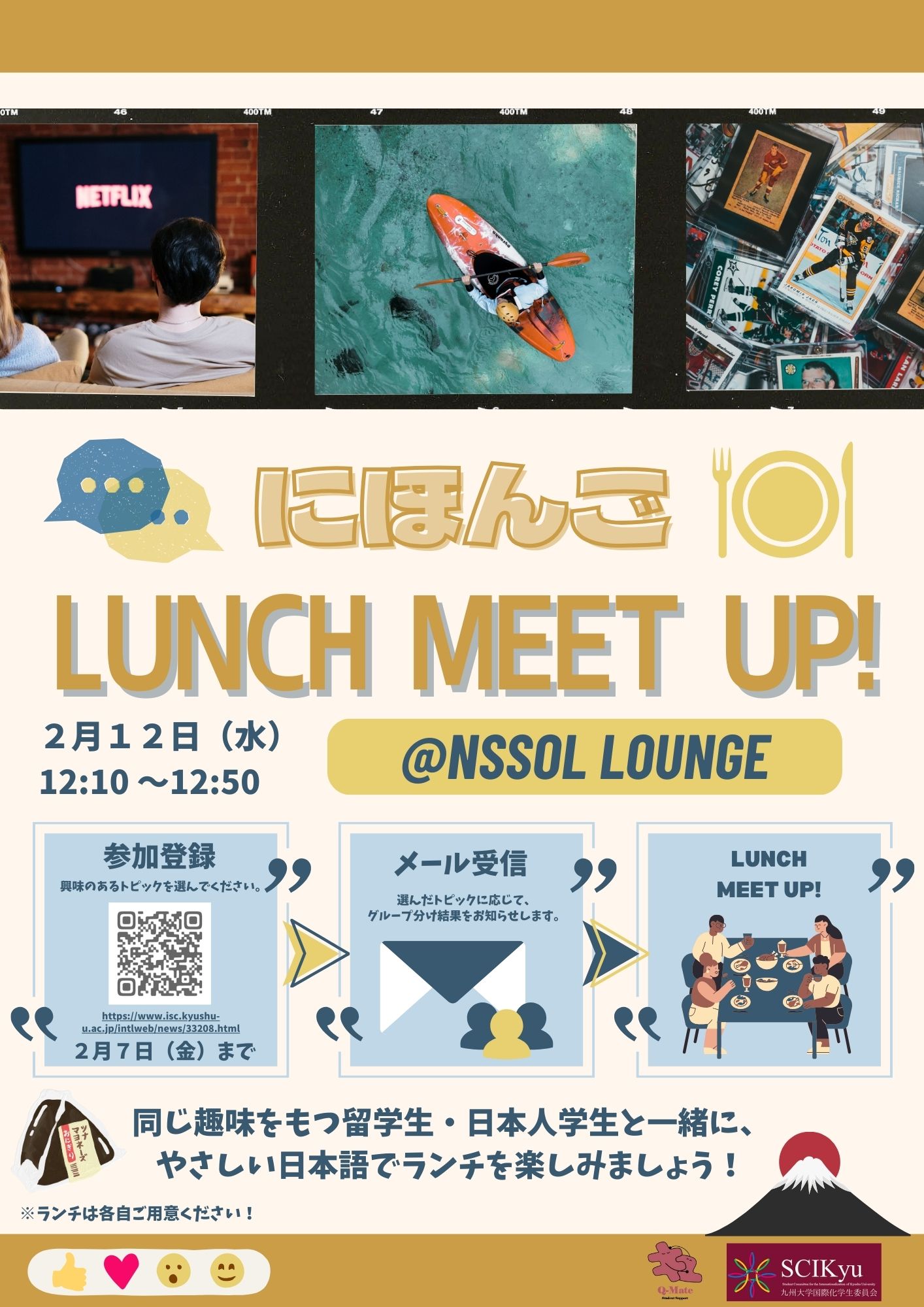 This is an announcement from the Student Committee for the Internationalization of Kyushu University (SCIKyu).