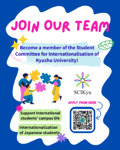 The Student Committee for Internationalization of Kyushu University (SCIKyu) is now recruiting new members. (both Japanese and international students)!