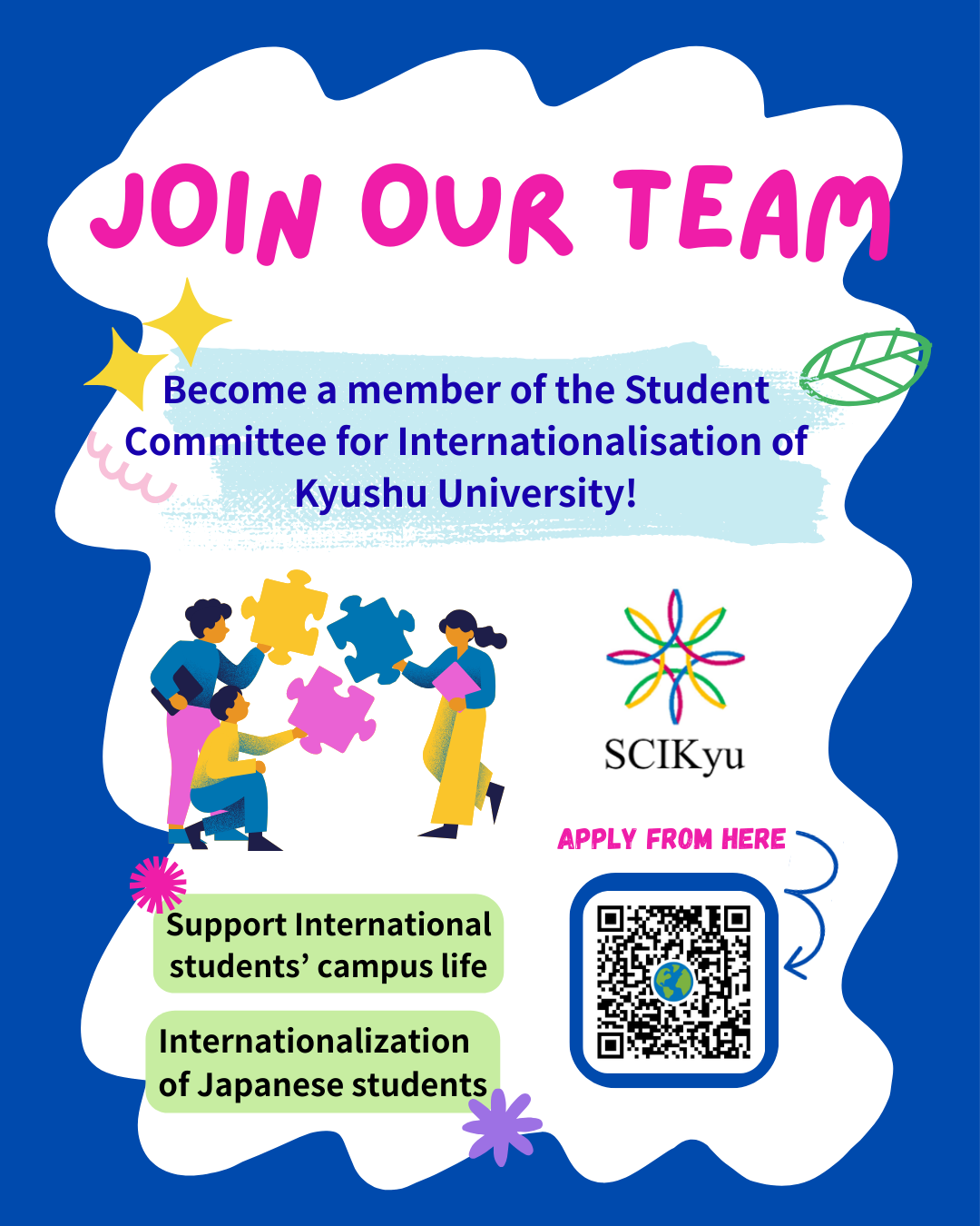 Join the SCIkyu team! Let’s work together to enhance the internationalization of Kyushu University.