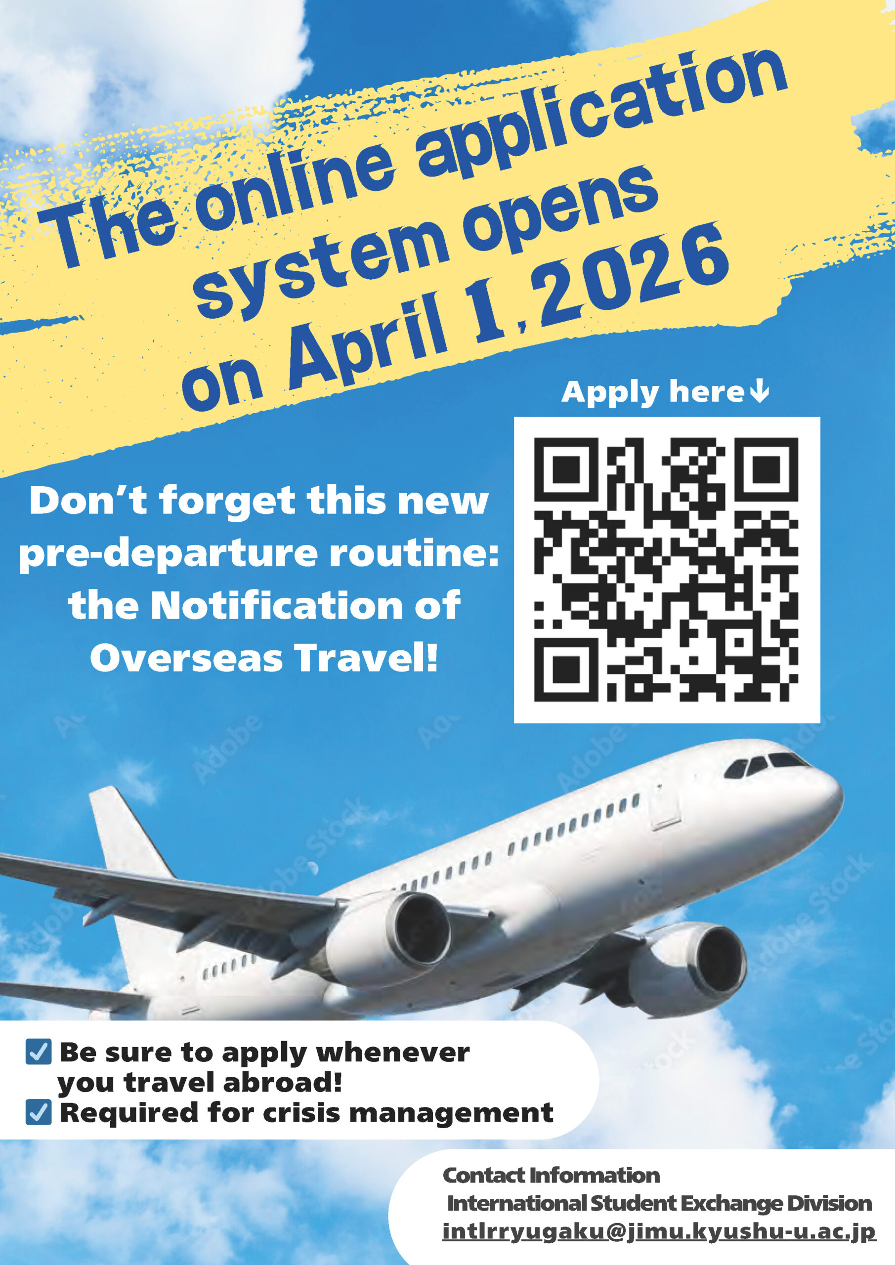 At Kyushu University, all students are required to submit an “Overseas Travel Notification” before traveling outside Japan.