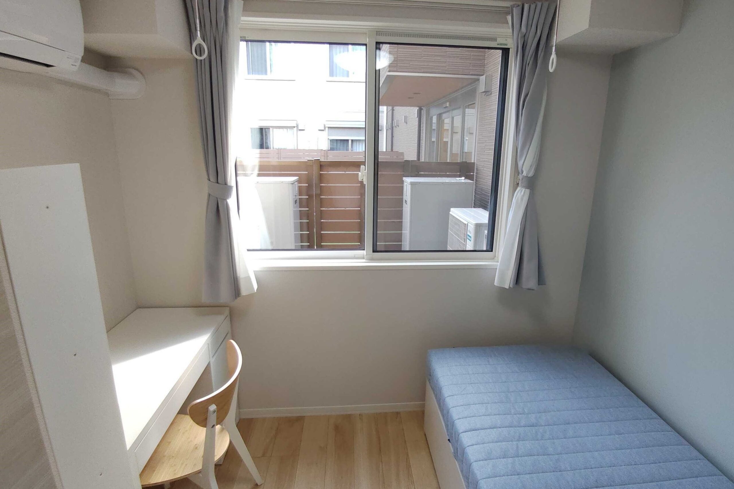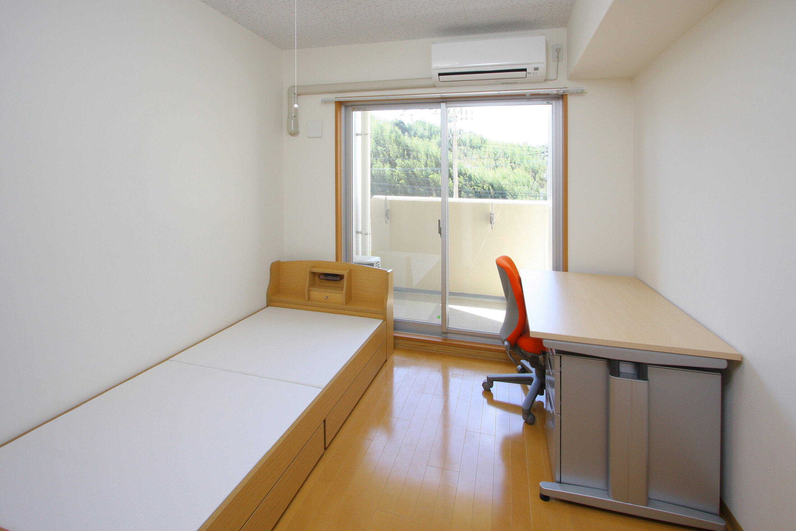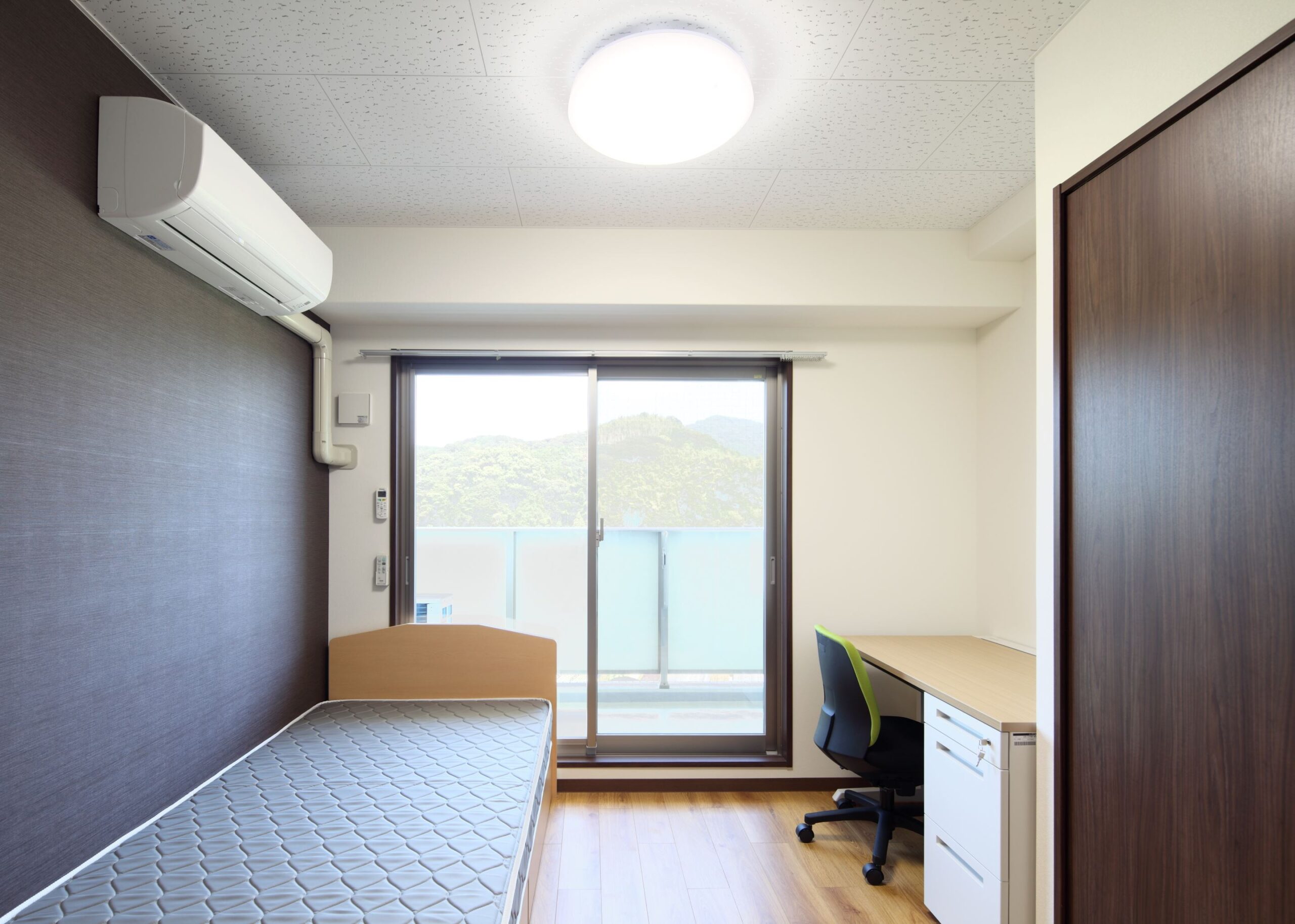 Personal area: Desk, Chair, Bed, Air conditioner, Closet, curtain, TV terminal, and Internet terminal