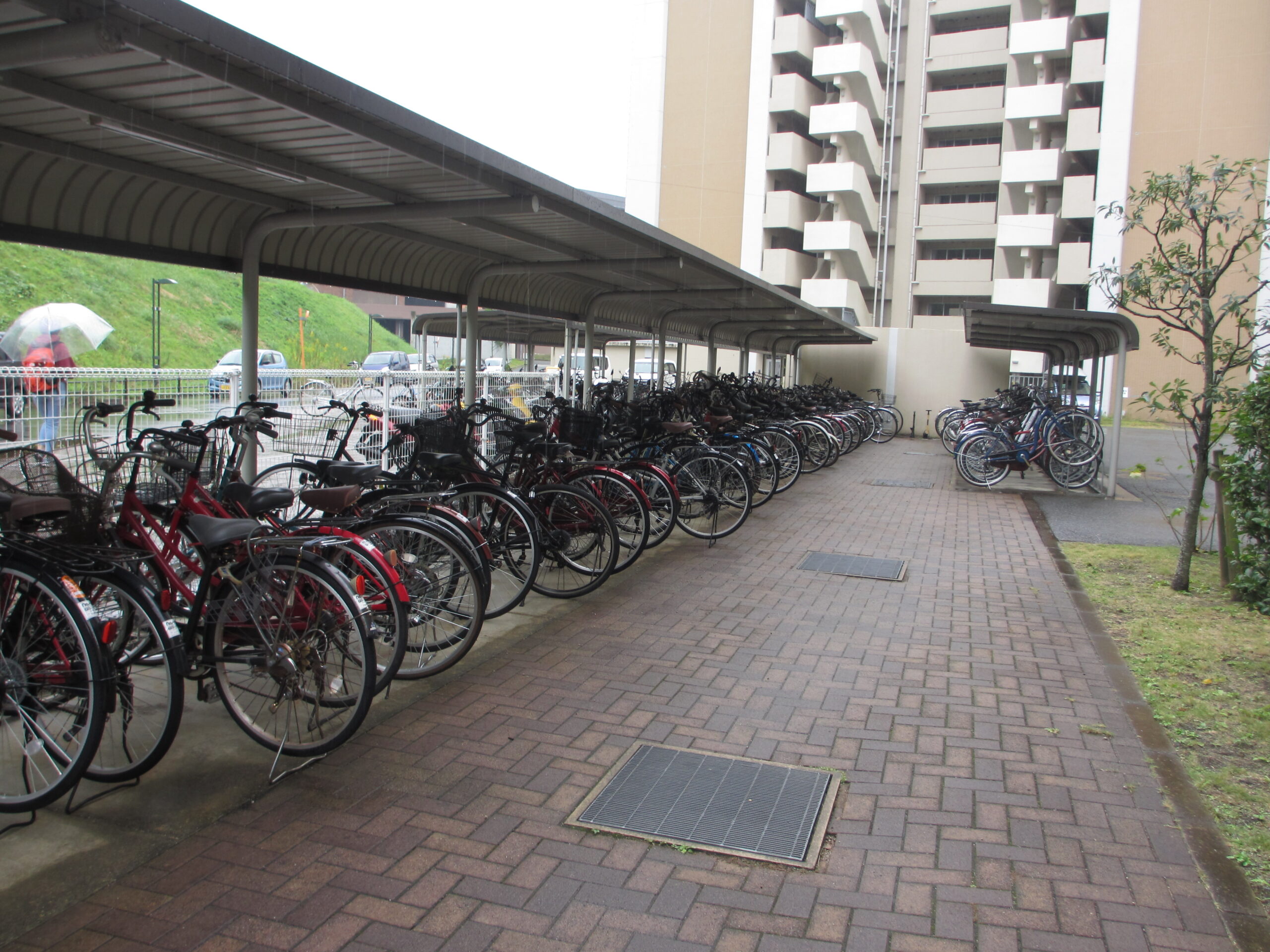 the outdoors : parking area for bicycles, BBQ space