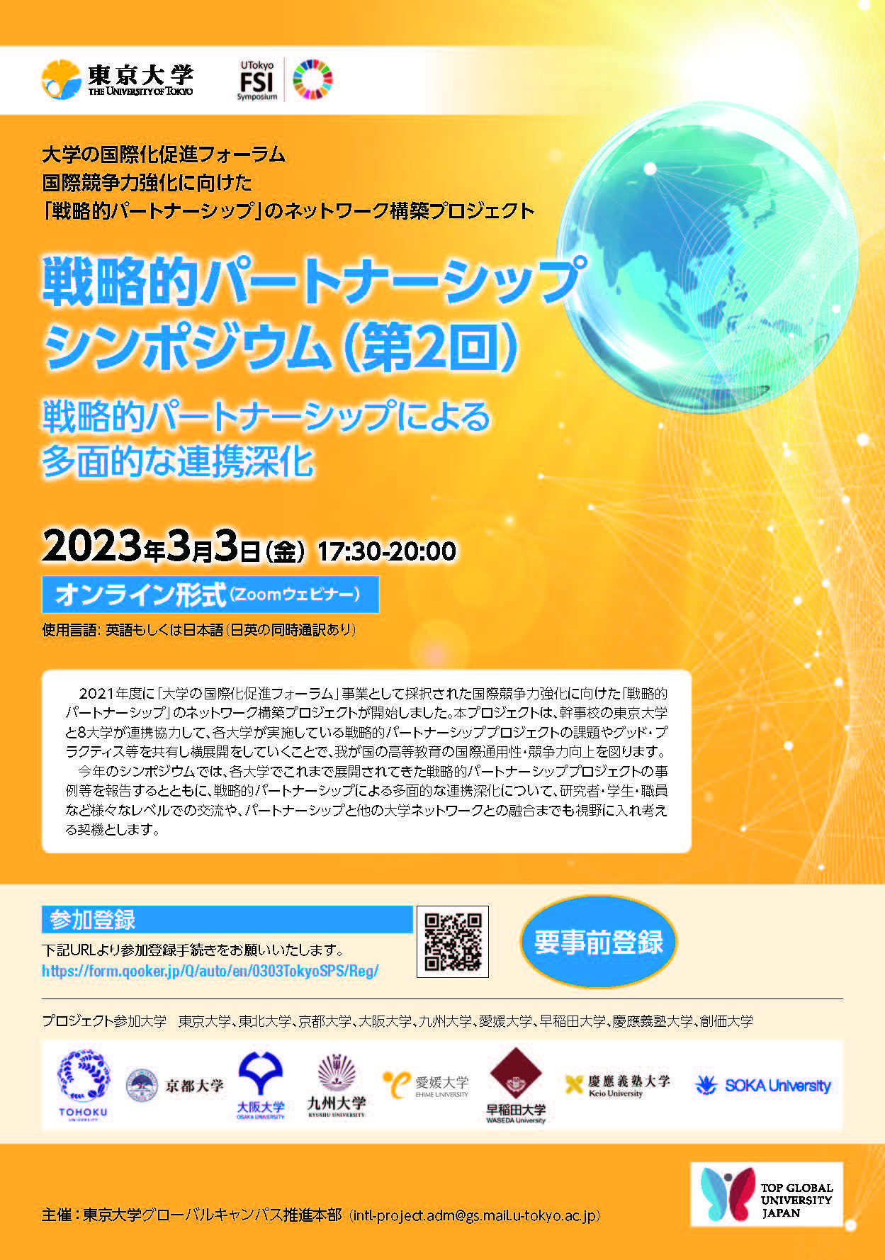 【3/3(金)17時30分〜オンライン開催】戦略的パートナーシップシンポジウム