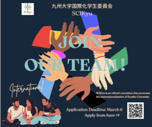 The Student Committee for Internationalization of Kyushu University (SCIKyu) is now recruiting new members.