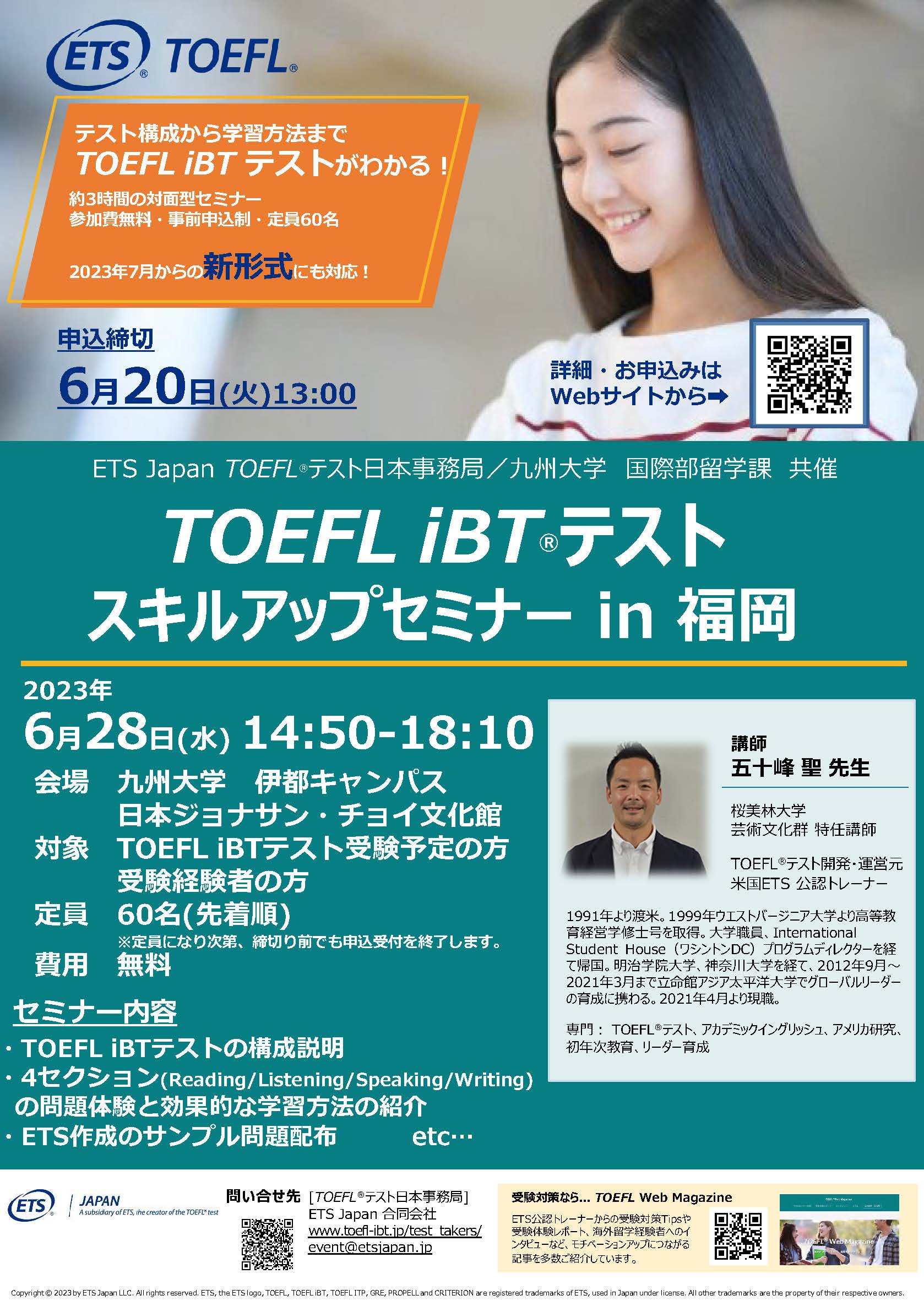 TOEFL iBT®テスト スキルアップセミナー開催のお知らせ