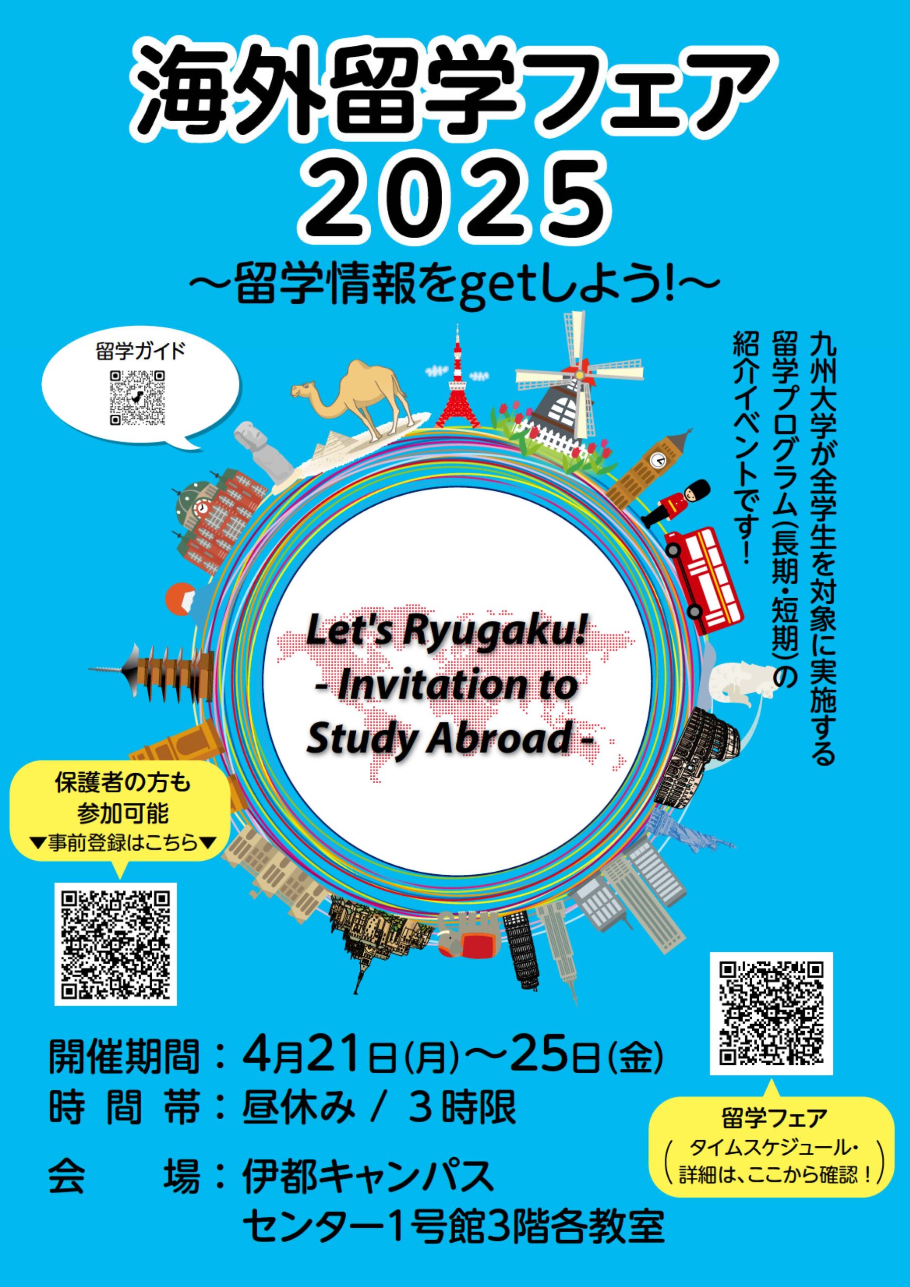 【4/21(月)~4/25(金)】九州大学海外留学フェア2025 開催!!