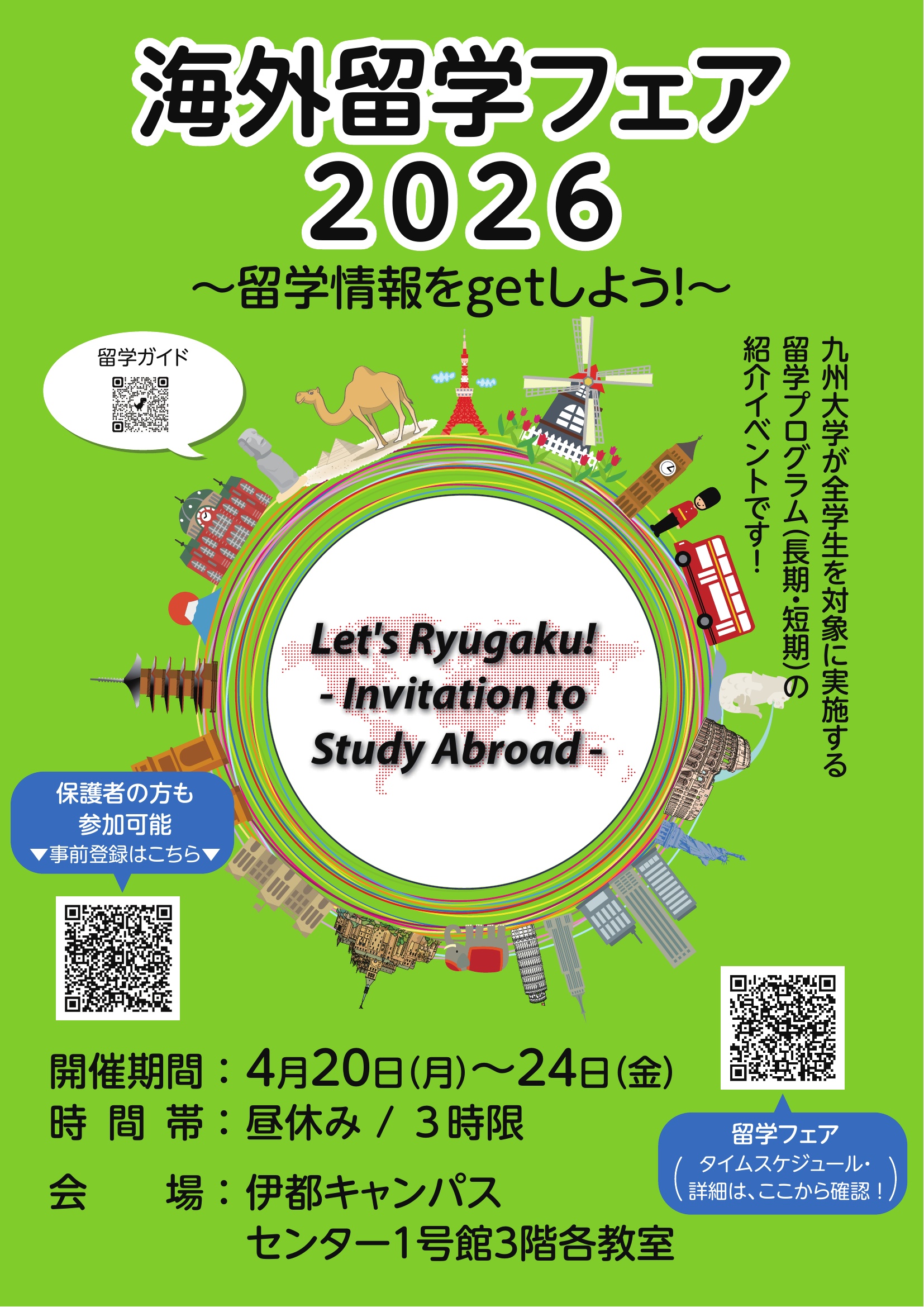【4/20(月)~4/24(金)】九州大学海外留学フェア2026 開催!!
