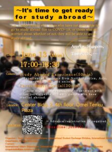 【6/13 (Mon.) 】Study Abroad Event ~It's time to get ready for study abroad~@Center Bldg. 2, 4F, Omei Tenku Plaza