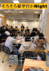 【6/13(月)開催】そろそろ留学行かNight @センター2号館4F 嚶鳴天空広場